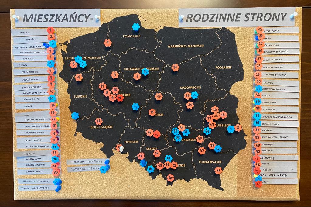 Nasz DOM położony jest w malutkiej, malowniczej miejscowości-SKWIRZOWA, w powiecie sandomierskim, w województwie świętokrzyskim. Ale MIESZKAŃCY naszego Domu pochodzą z całej POLSKI☺☺ Mamy Mieszkańców z województwa: pomorskiego, lubuskiego, mazowieckiego, łódzkiego, dolnośląskiego, opolskiego, małopolskiego, podkarpackiego itd. Przygotowaliśmy mapę Polski z informacją o rodzinnych stronach naszych Mieszkańców. Zapraszamy do zapoznania się☺Może jest ktoś z Twojej okolicy