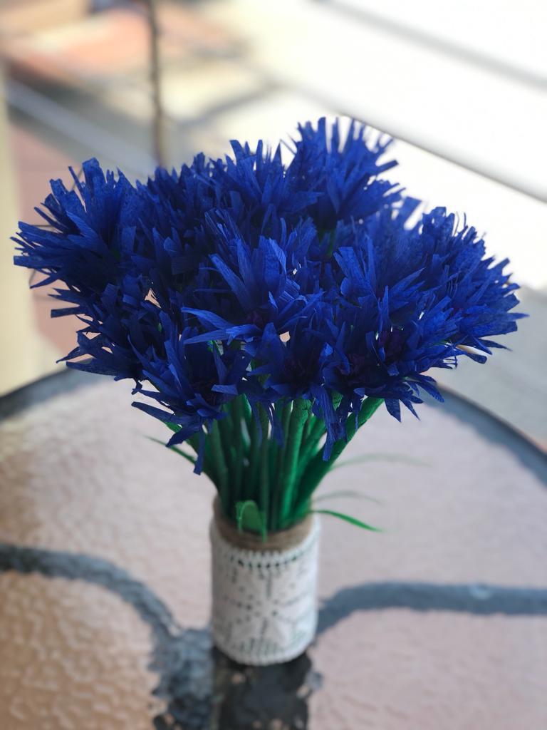 Mieszkańcy naszego domu bardzo kochają kwiaty. Często to właśnie one są tematem prac wykonywanych przez mieszkańców na terapii zajęciowej. Dziś chcieliśmy Wam pokazać chabry i róże widziane oczami mieszkańców, wykonane z bibuły.
