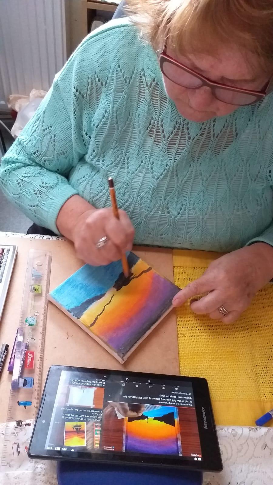W naszym DPS prowadzimy terapię zajęciową. Przybiera ona rożne formy: malujemy, wycinamy, rozwiązujemy łamigłówki. Mamy też roślinki, które pielęgnujemy 🙂 Terapia jest bardzo ważna dla mieszkańców – zwiększa samodzielność, poprawia stan fizyczny, doskonali umiejętności naszych mieszkańców. A dodatkowo odwraca uwagę od choroby i związanych z nią nieprzyjemności.