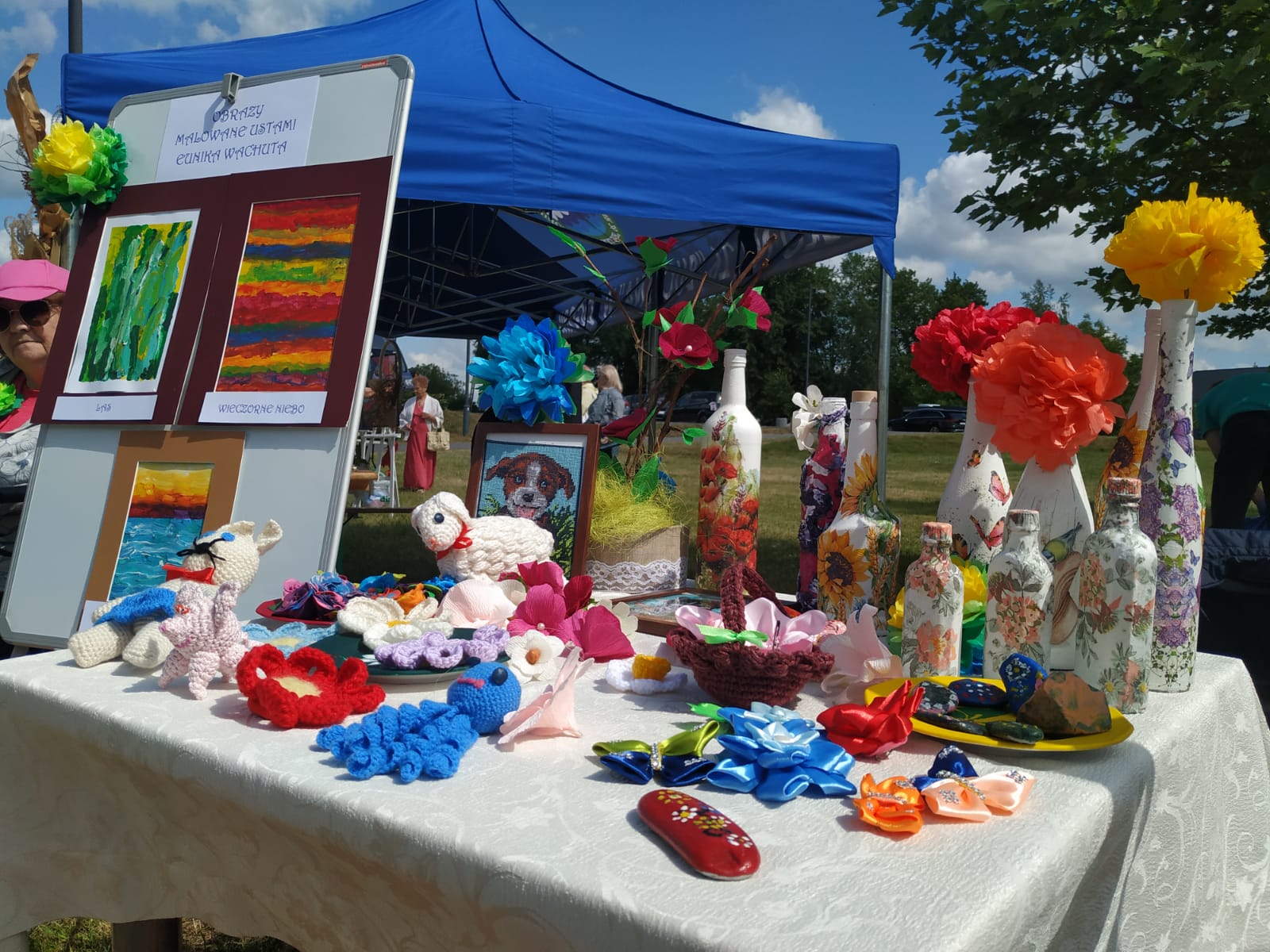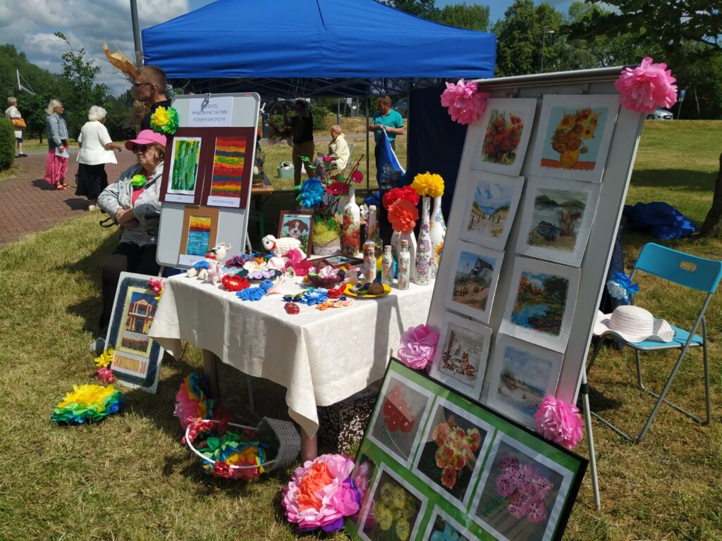 I szczerze trzeba przyznać, że nasze stoisko było bardzo barwne i różnorodne. Sami jesteśmy zaskoczeni ile ciekawych prac udało się wykonać na zajęciach TERAPII i jakich mamy zdolnych Mieszkańców.